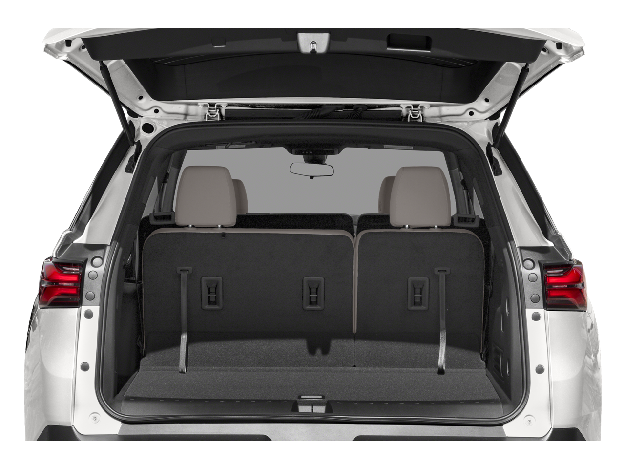 Equipped with Convenience & Driver Confidence Package (4.2" Multi-Color Enhanced Driver Instrument Display, Heated Driver & Front Passenger Seats, Radio: Chevrolet Infotainment 3 Plus System, Rear Power Liftgate, Remote Start, SiriusXM w/360L, and Universal Home Remote), Floor Liner Package (LPO) (1st & 2nd Row All-Weather Floor Liner (LPO), 3rd Row All-Weather Floor Liner (LPO), and Integrated Cargo Liner (LPO)), Preferred Equipment Group 1LT, 2-Way Manual Front Passenger Seat Adjuster, 3.49 Axle Ratio, 3rd row seats: split-bench, 4-Wheel Disc Brakes, 6 Speakers, 6-Speaker Audio System Feature, 8-Way Power Driver Seat Adjuster, ABS brakes, Air Conditioning, Alloy wheels, AM/FM radio: SiriusXM, Apple CarPlay/Android Auto, Auto High-beam Headlights, Automatic temperature control, Black Roof Rails, Brake assist, Bumpers: body-color, Compass, Delay-off headlights, Driver door bin, Driver vanity mirror, Dual front impact airbags, Dual front side impact airbags, Electronic Stability Control, Emergency communication system, Exterior Parking Camera Rear, Four wheel independent suspension, Front anti-roll bar, Front Bucket Seats, Front Center Armrest, Front dual zone A/C, Front reading lights, Fully automatic headlights, Heated door mirrors, Illuminated entry, Leather steering wheel, Low tire pressure warning, Not Equipped w/Rear Park Assist (060), Occupant sensing airbag, Outside temperature display, Overhead airbag, Overhead console, Panic alarm, Passenger door bin, Passenger vanity mirror, Power door mirrors, Power Driver Lumbar Control, Power driver seat, Power steering, Power windows, Premium Cloth Seat Trim, Radio data system, Radio: Chevrolet Infotainment System AM/FM Stereo, Rear air conditioning, Rear anti-roll bar, Rear reading lights, Rear window defroster, Rear window wiper, Remote keyless entry, Security system, SiriusXM Radio, Speed control, Speed-sensing steering, Spoiler, Steering wheel mounted audio controls, Tachometer, Telescoping steering wheel, Tilt steering wheel, Traction control, Trip computer, Turn signal indicator mirrors, Variably intermittent wipers, Voltmeter, and Wheels: 18" Bright Silver-Painted Aluminum.